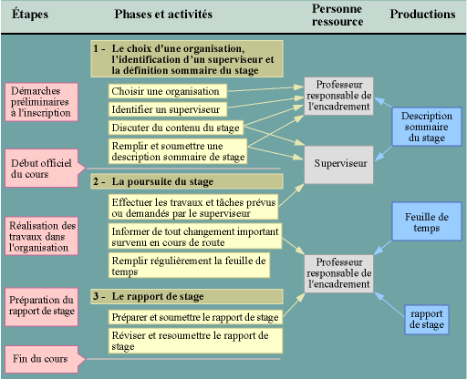 Pour vous aider à atteindre les objectifs du cours, et dans un esprit d’évaluation formative, il est bien possible qu’on vous demande, avant même de lui attribuer une note, de reprendre votre rapport de stage sur la base des commentaires et suggestions qui vous seront fournis. |